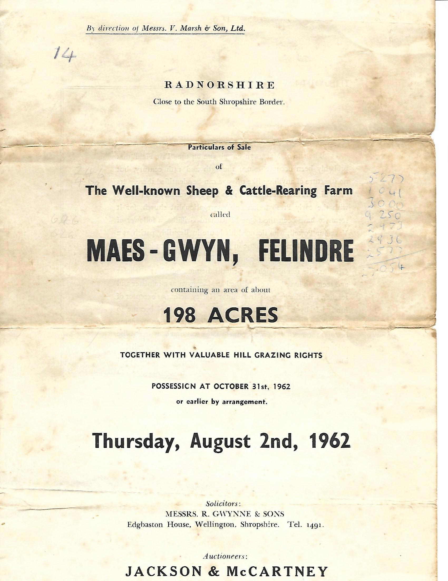 Original particualrs from the sale of Maesgwyn