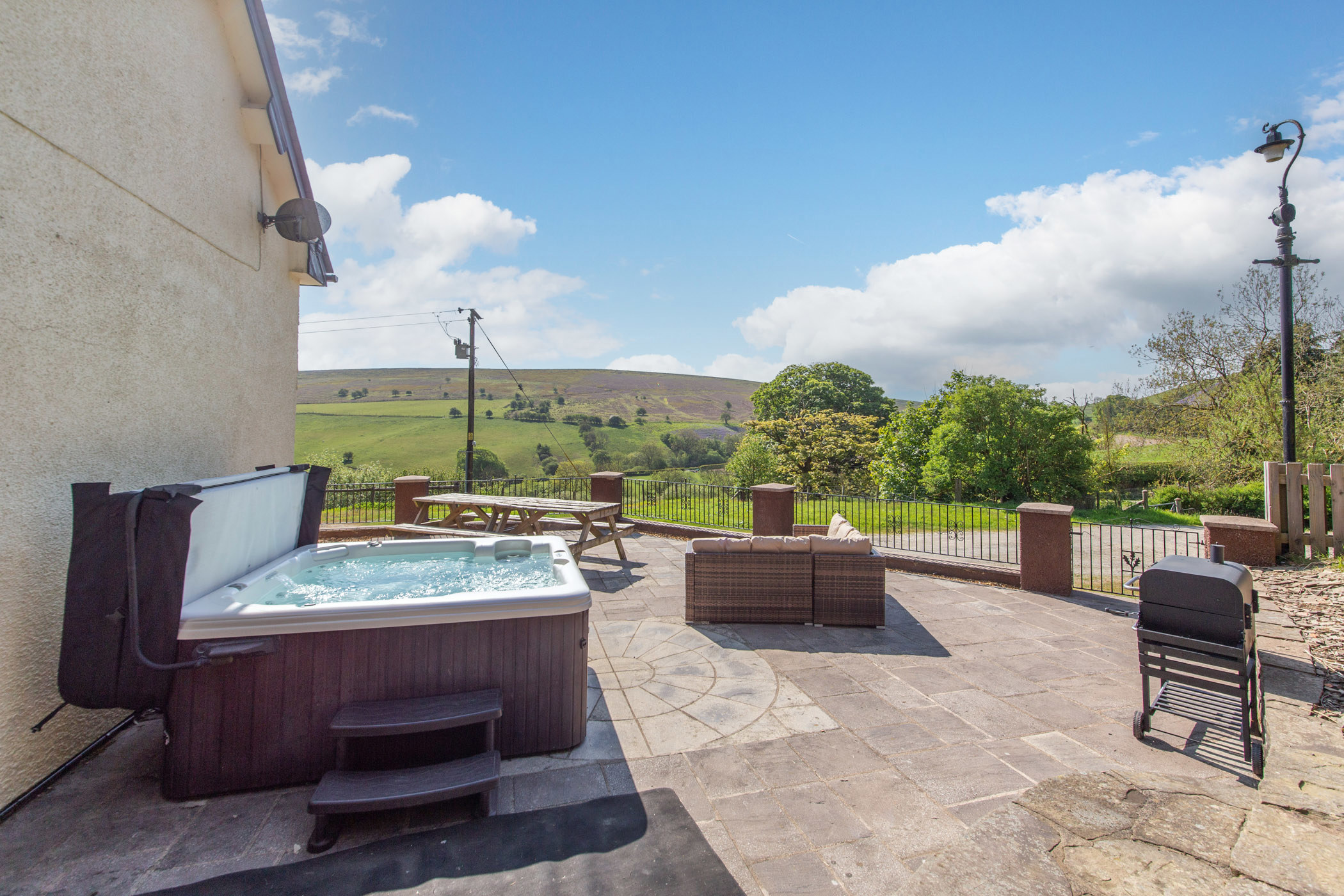 The outside patio is an ideal sociable space with luxurious hot tub to relax away the hours. Feast using the charcoal BBQ and dine on the picnic benches or comfy seating area looking out accross the fields. Mellow in the peace and tranquillity and soak in the picturesque views of the Welsh countryside. The property also boasts a surrounding patio. Up to four well behaved dogs are welcome at Maesgwyn Farmhouse and there is a wealth of trails to explore right from the doorstep should you wish to venture out.
