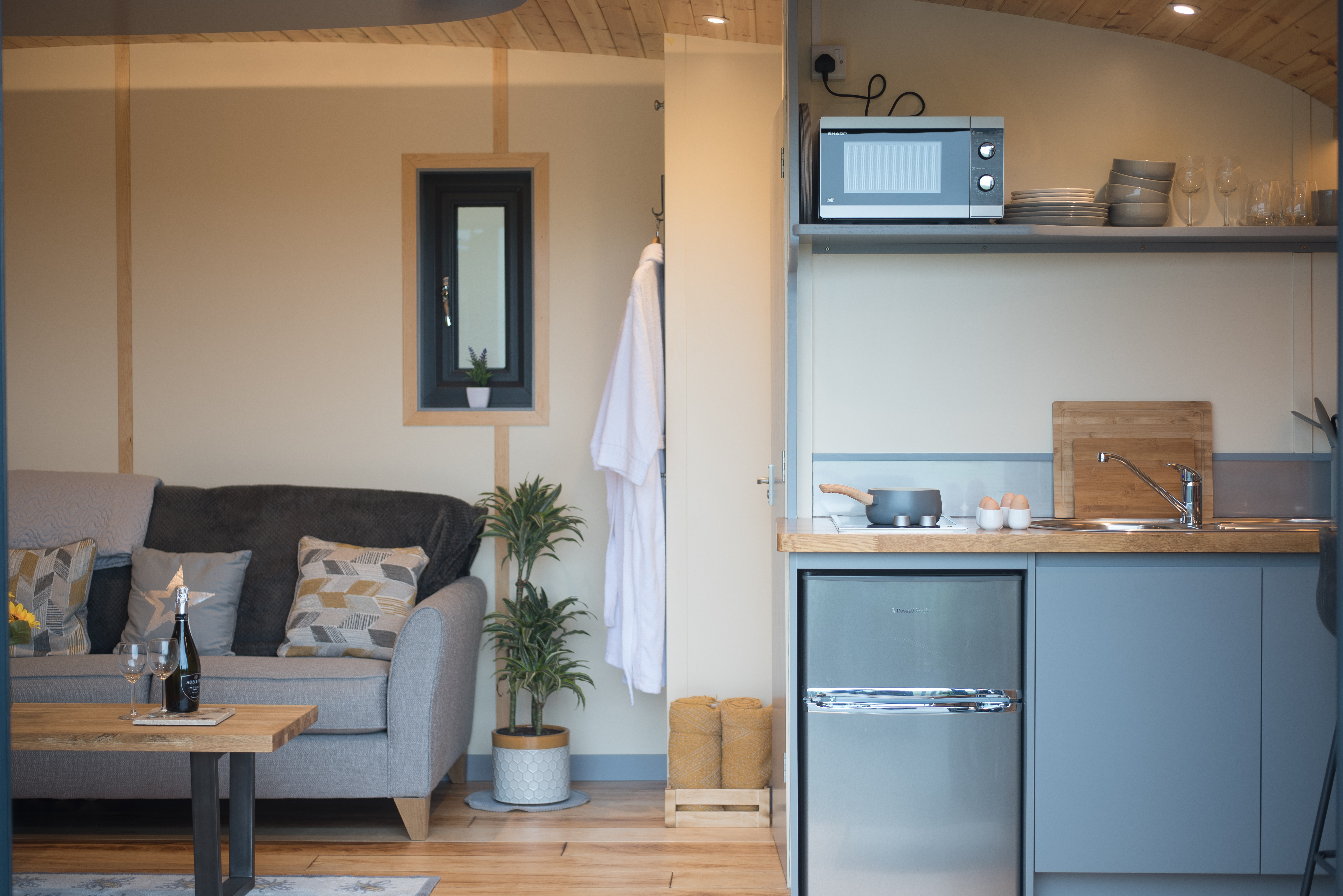 - Kitchenette includes- 2 ring hob and microwave, under counter fridge/ freezer. Cutlery, crockery and utensils included.